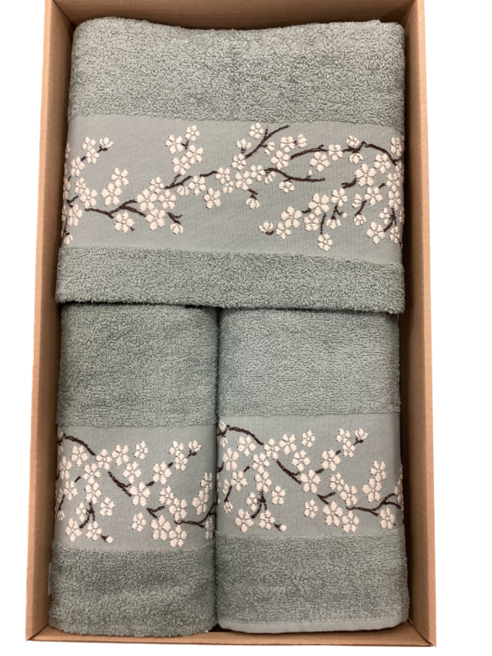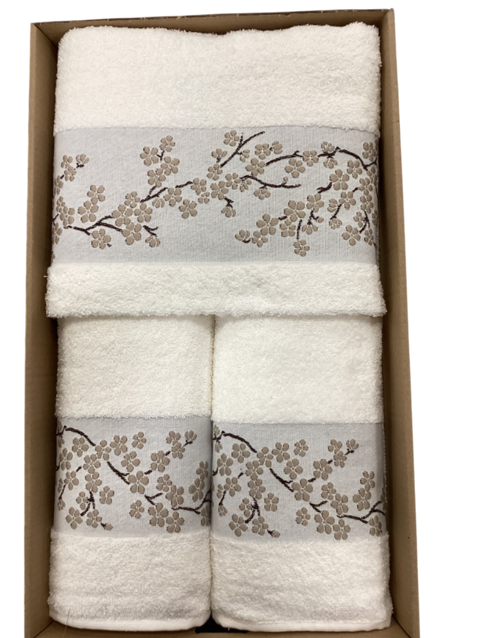 La caratteristica distintiva di questi asciugamani è il ricamo finemente realizzato nella parte finale, che presenta rametti sottili e delicati fiori. I motivi, scelti con cura, conferiscono un tocco di raffinatezza e freschezza, perfetti per arricchire l’arredamento del bagno. Il ricamo unisce tradizione e bellezza.