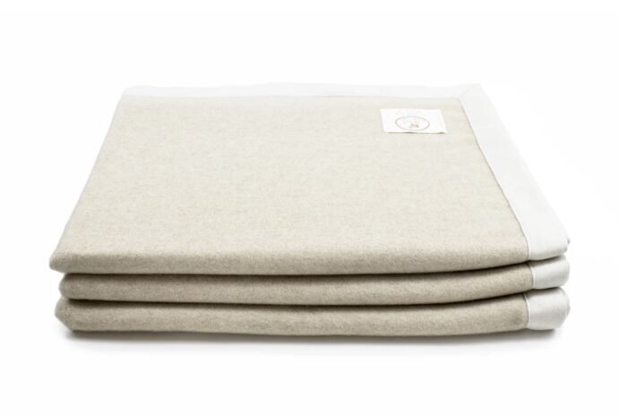 Marchio Co.Bi., coperta invernale singola con dimensione 160×220 cm., 65% lana e 35% mohair, peso 400 gr/mq. Double-face è rifinita con bordo in tessuto a contrasto. Esiste nella tonalità greggio.
