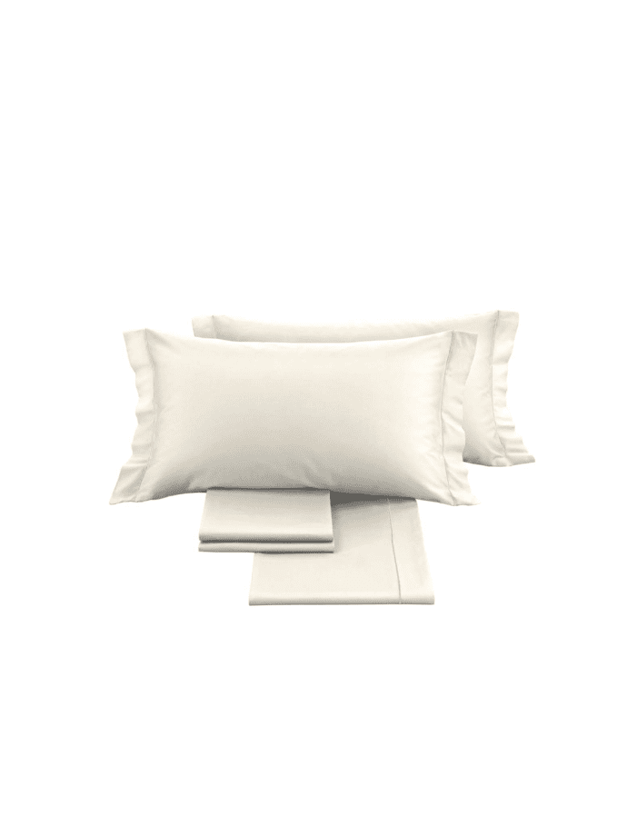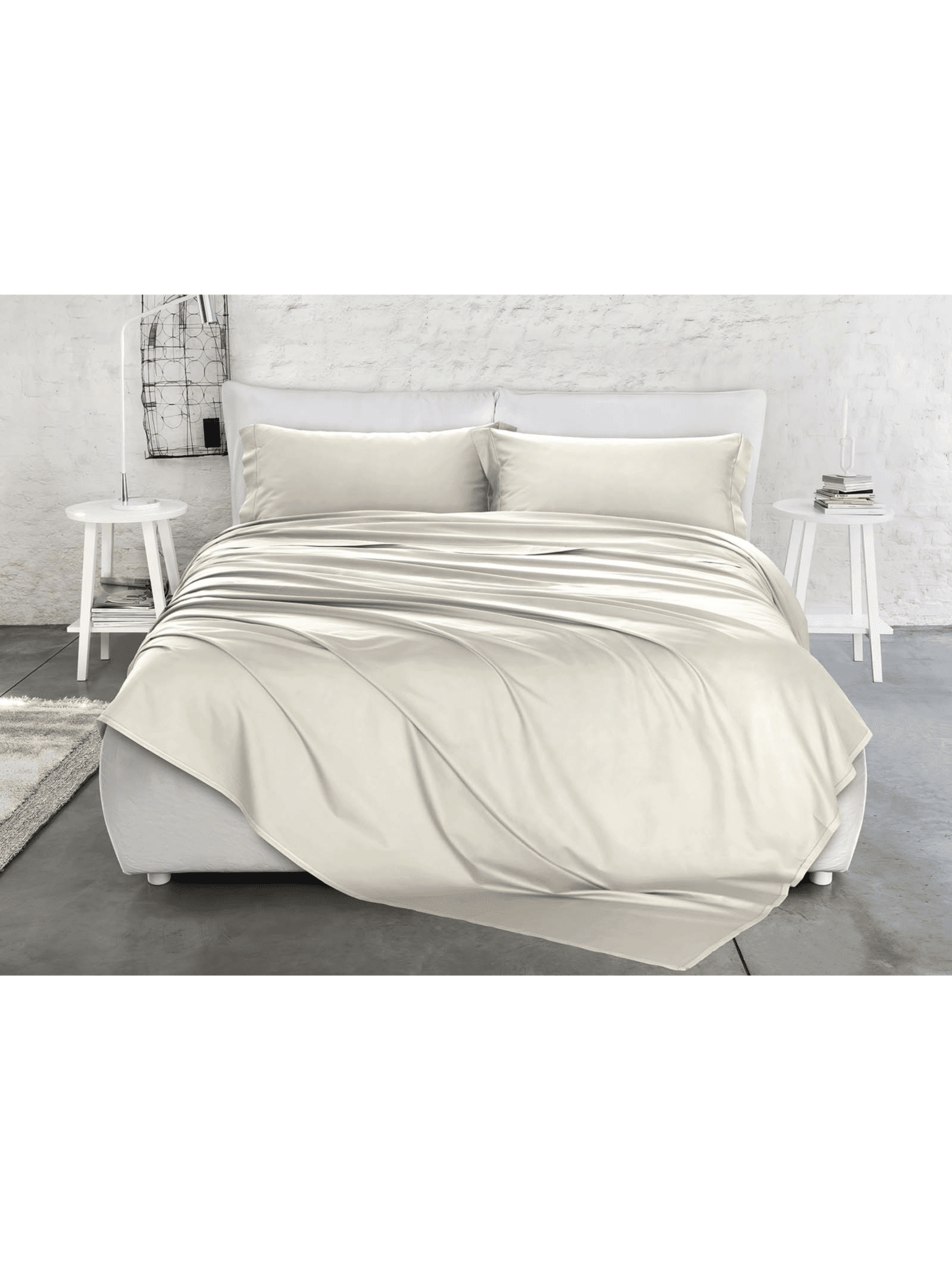 Completo Lenzuolo Matrimoniale in Raso di Cotone Avorio
