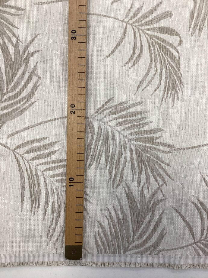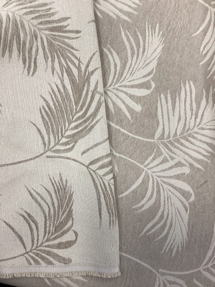 Tessuto d’arredo in cotone beige double face, caratterizzato da un elegante motivo di foglie stilizzate bianche. Questo tessuto versatile, morbido al tatto e resistente, può essere utilizzato da entrambi i lati, offrendo diverse opzioni estetiche. Perfetto per creare cuscini o rivestimenti, aggiunge un tocco di freschezza e raffinatezza a qualsiasi ambiente. Il design minimalista delle foglie bianche su sfondo beige si adatta facilmente a stili di arredamento moderni e contemporanei.