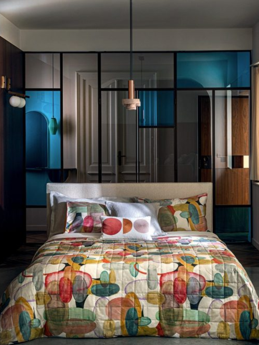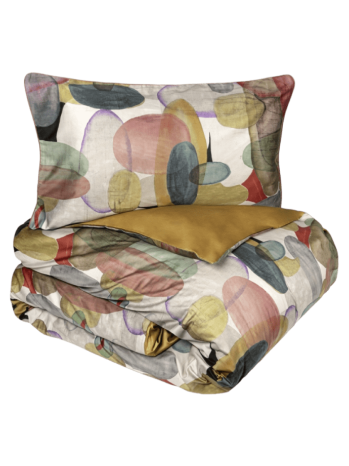 Dona un tocco di eleganza e freschezza alla tua camera da letto con questa parure copripiumino dal design raffinato. Il set è caratterizzato da un copripiumino e due federe decorati con forme geometriche astratte multicolore che si stagliano su uno sfondo neutro. I dettagli geometrici aggiungono un tocco di dinamismo, perfetto per creare un’atmosfera vivace.