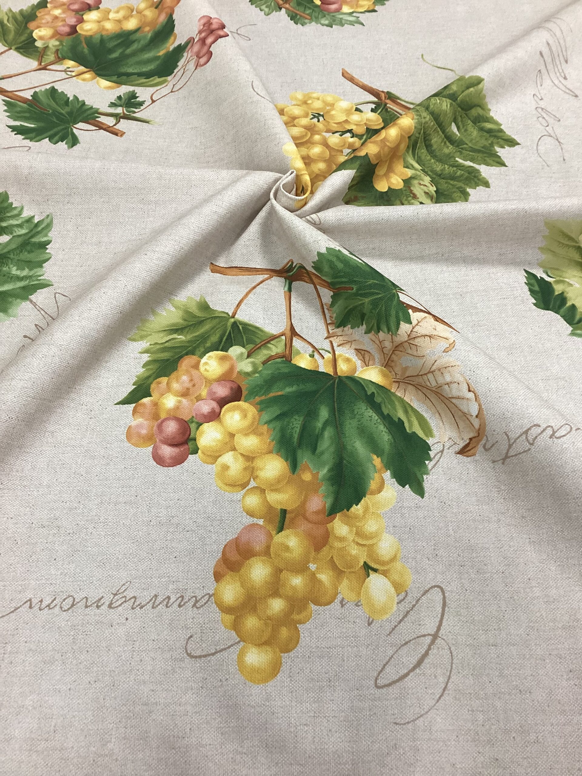Tessuto antimacchia con uva, senza necessità di stiratura, ideale per tovagliato. Altezza tessuto cm. 1,60