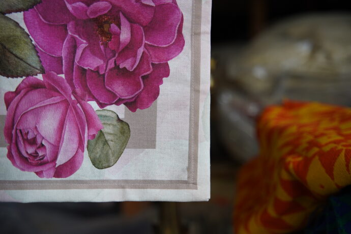 Runner con stampa digitale di rose. Porta nell’ambiente un tocco elegante e raffinato con questo fiore! Puro cotone, Made in Italy!