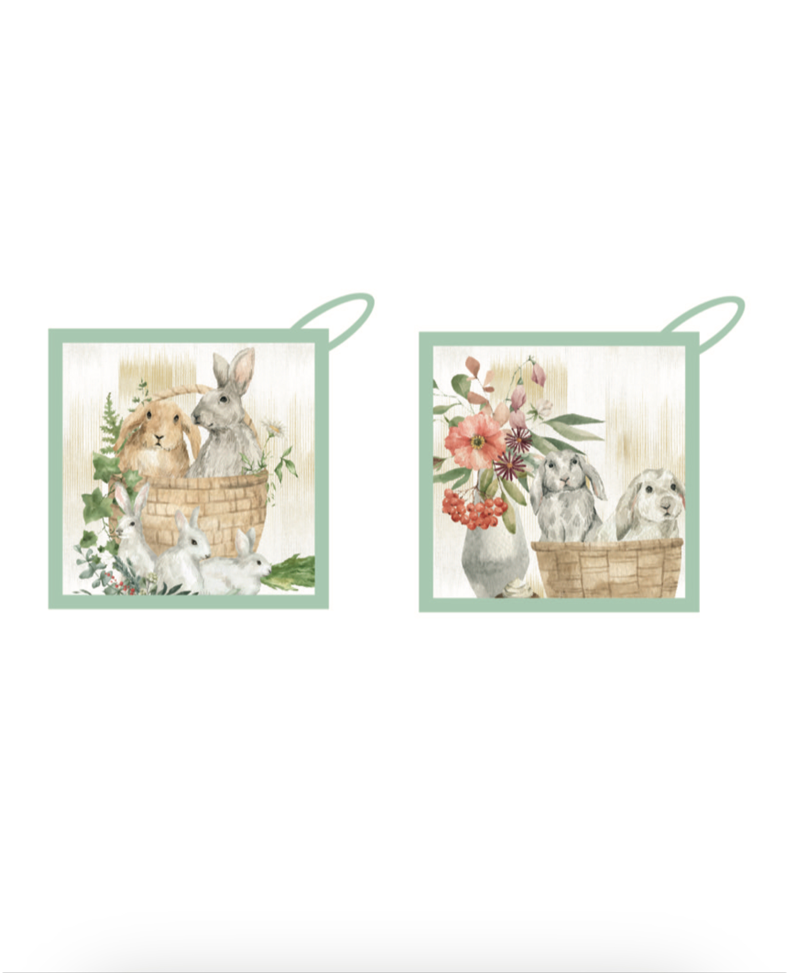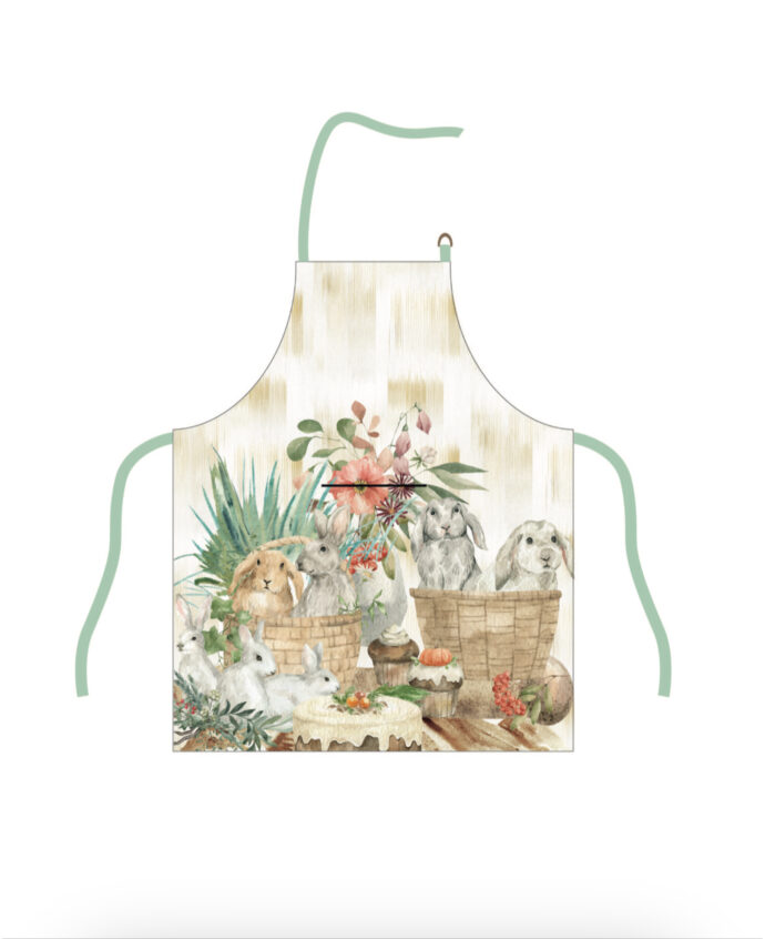 Il set cucina è composto da un grembiule e due presine, tutti realizzati in cotone di alta qualità. Le presine, coordinate, hanno un motivo simile, con dettagli che richiamano il tema del grembiule. Il grembiule presenta una stampa digitale delicata su fondo beige, con coniglietti stilizzati e dolci pasquali, come uova decorate e colombe, disposti in modo armonioso. I toni tenui e pastello dei disegni, insieme al colore neutro del beige, conferiscono un’atmosfera calda e accogliente, perfetta per la stagione primaverile e le festività pasquali. Le presine, abbinate, riportano un motivo simile, creando un set elegante e festoso per la cucina. L’intero set è ideale per aggiungere un tocco di colore e freschezza alla cucina.