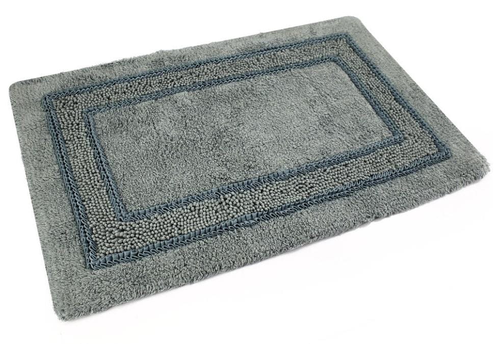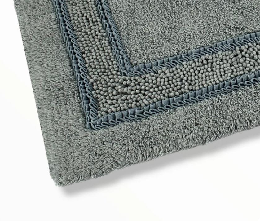 Tappeto in puro cotone con cornice di riccioli in ciniglia. Disponibile in varie misure e vari colori
