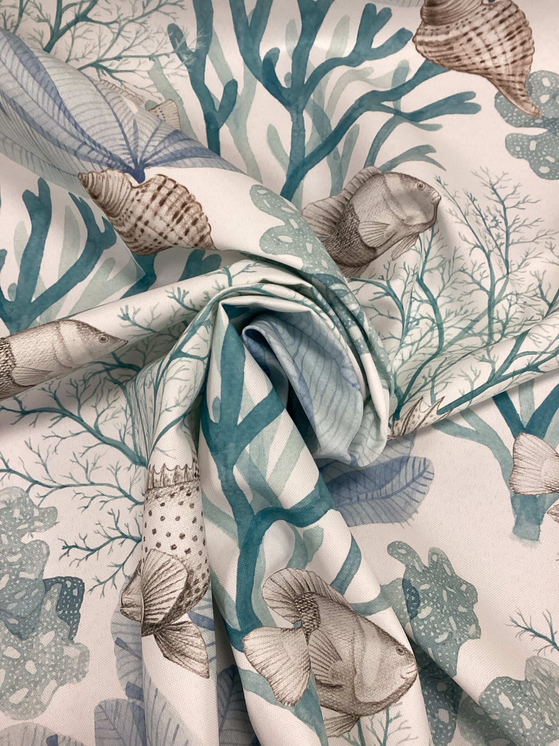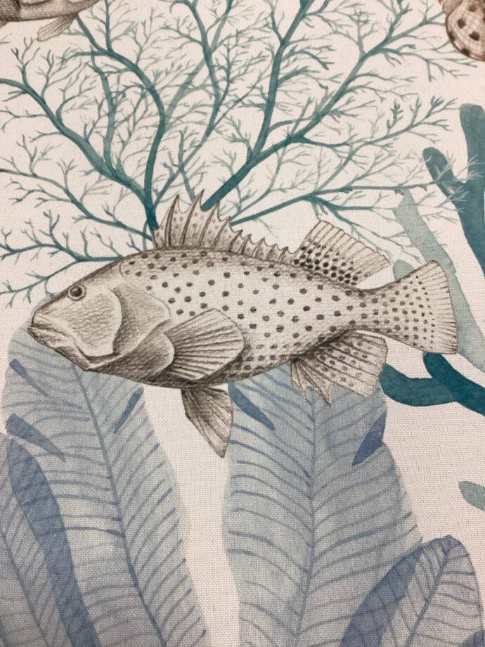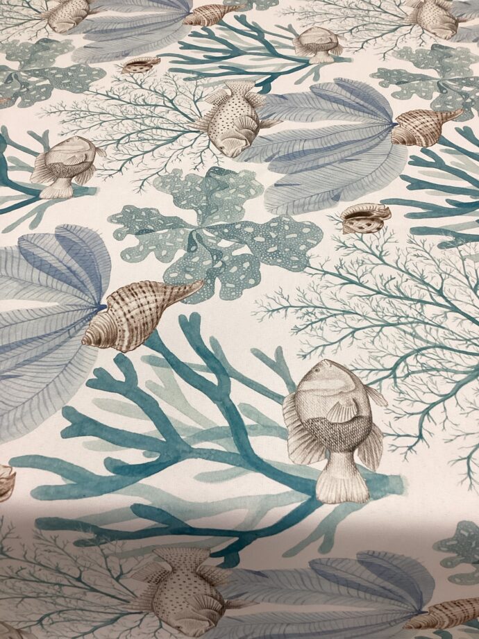 Tessuto antimacchia con pesci e coralli