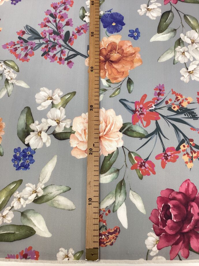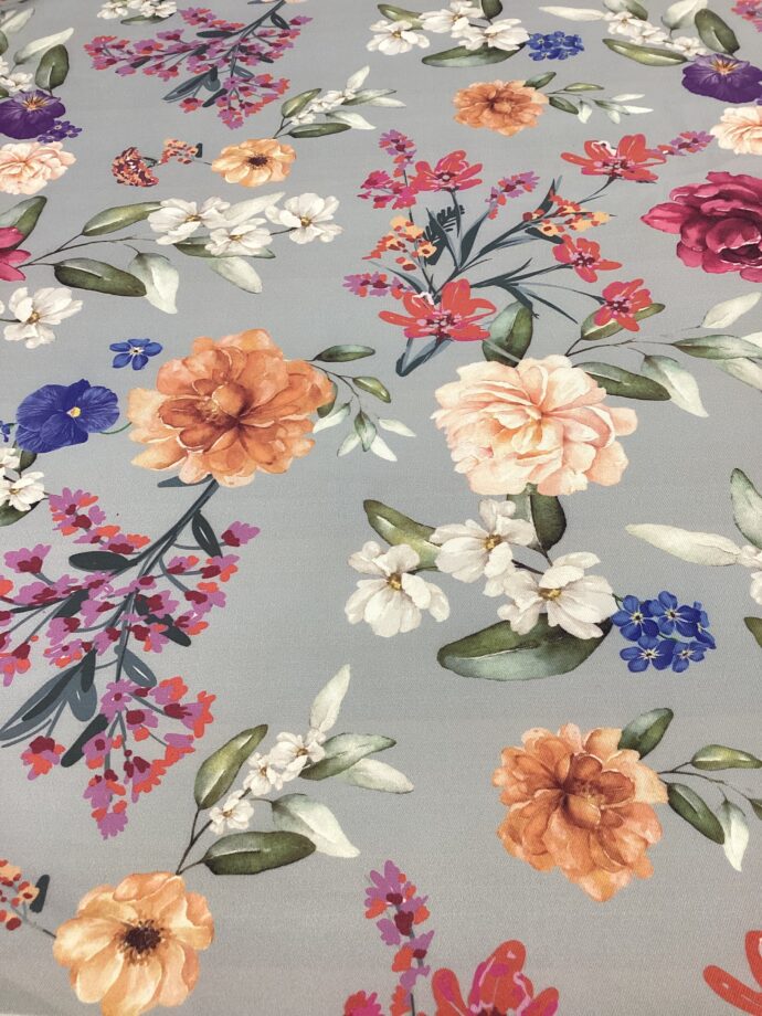 Tessuto smacchia facile con stampa digitale di Fiori da Giardino. Altezza tessuto 1.60 m.