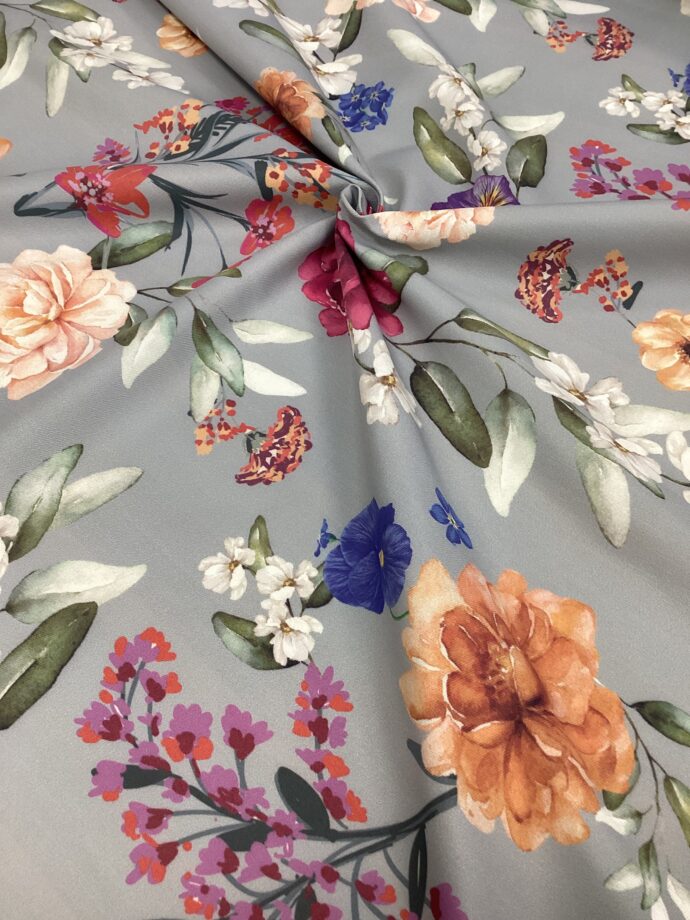 Un tessuto antimacchia ideale per tovagliato e tappezzeria presenta una mano morbida ma resistente, con trattamento superficiale, facile da pulire e durevole nel tempo. È realizzato in poliestere, per garantire struttura e caduta elegante. Questo tessuto antimacchia per tappezzeria presenta una base bianca luminosa, ideale per valorizzare la vivacità della stampa digitale. La stampa digitale ad alta definizione garantisce nitidezza e profondità dei colori, mentre il trattamento rende il tessuto resistente e pratico per l’uso quotidiano, perfetto per rivestimenti di sedute, cuscini o pannelli decorativi. Un tessuto antimacchia di base grigio chiaro con fiori colorati da giardino a campo pieno presenta uno sfondo uniforme e tenue che esalta la vivacità dei motivi floreali. Sono rappresentati in una varietà di colori brillanti – come rosso, rosa, giallo, viola e blu – evocando un giardino rigoglioso. Il trattamento antimacchia rende il tessuto pratico e resistente, ideale per ambienti vissuti come cucine, salotti o spazi esterni, unendo estetica e funzionalità.