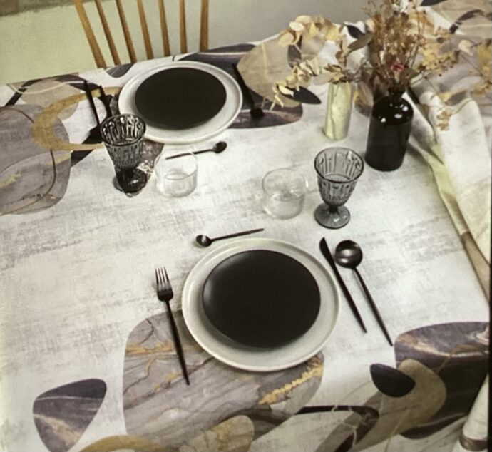 Tessuto antimacchia ideale per realizzare tovaglie e runner su misura.