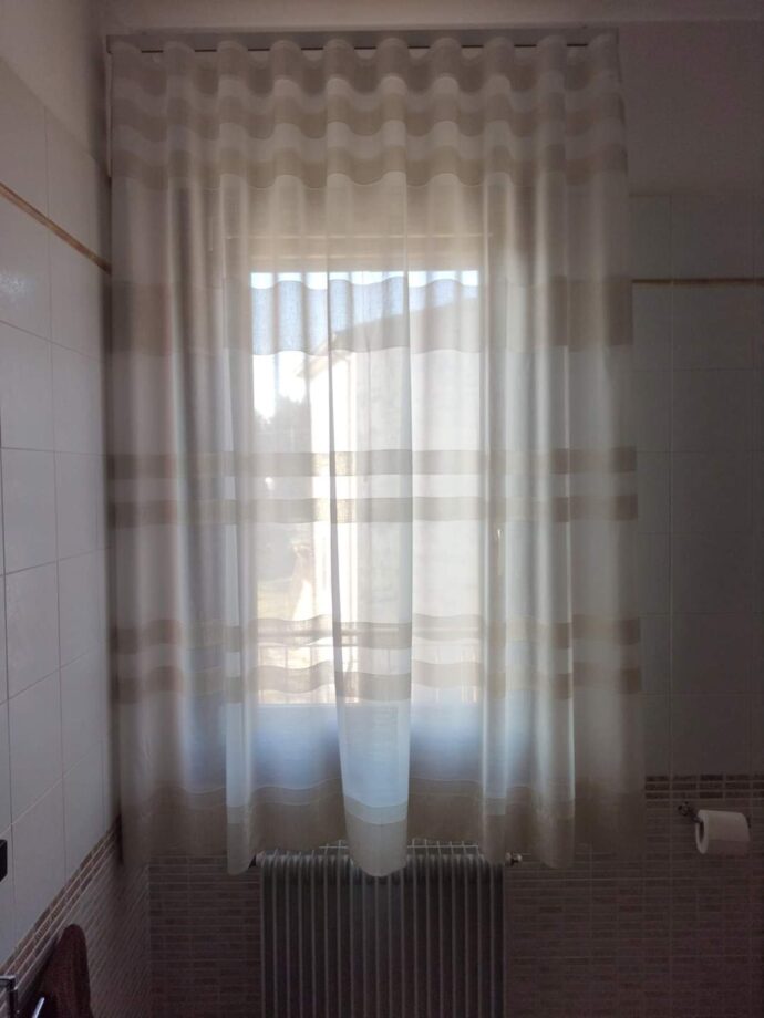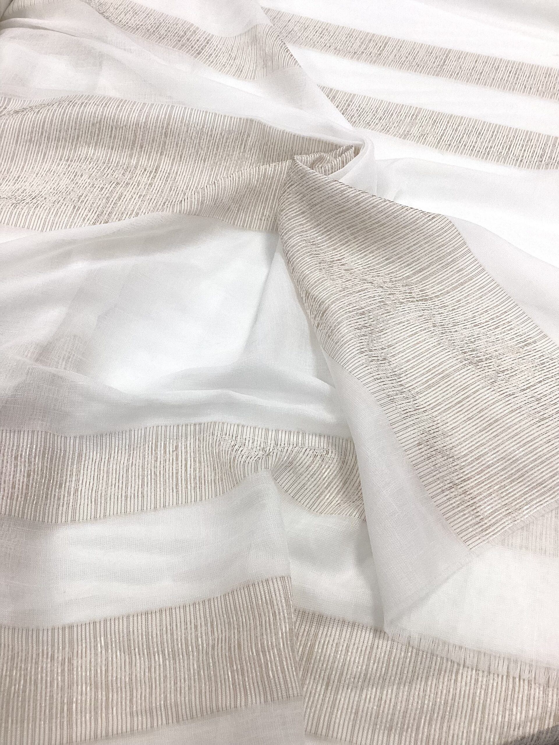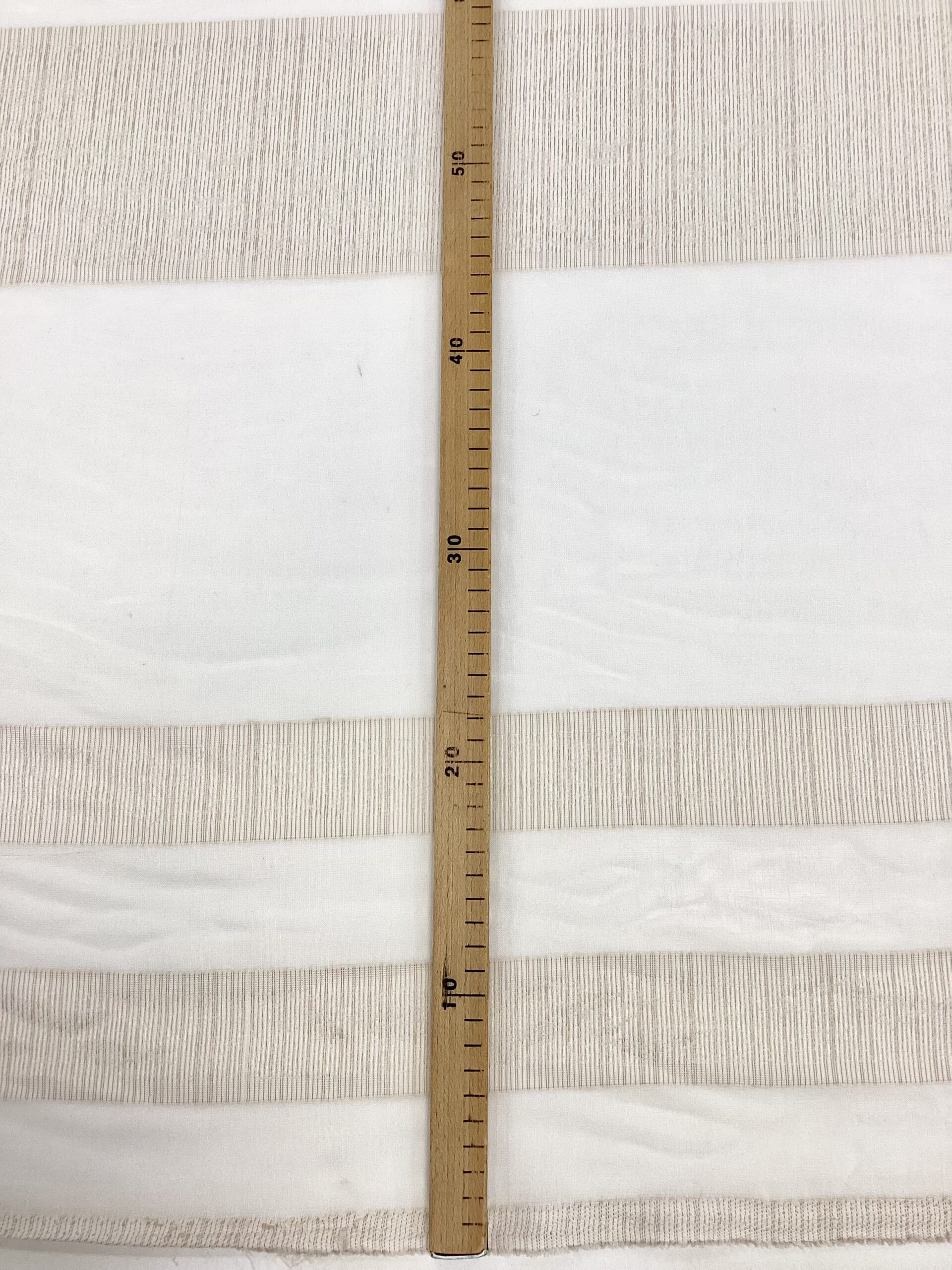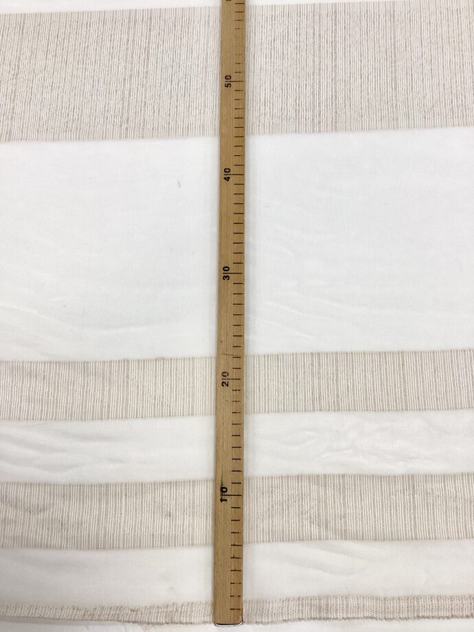 Il design a righe alternate beige su fondo bianco dona eleganza e luminosità agli spazi, creando giochi di luce discreti e sofisticati. Le tonalità neutre si abbinano facilmente a qualsiasi stile d’arredo, offrendo una soluzione decorativa sobria ma di grande impatto visivo.