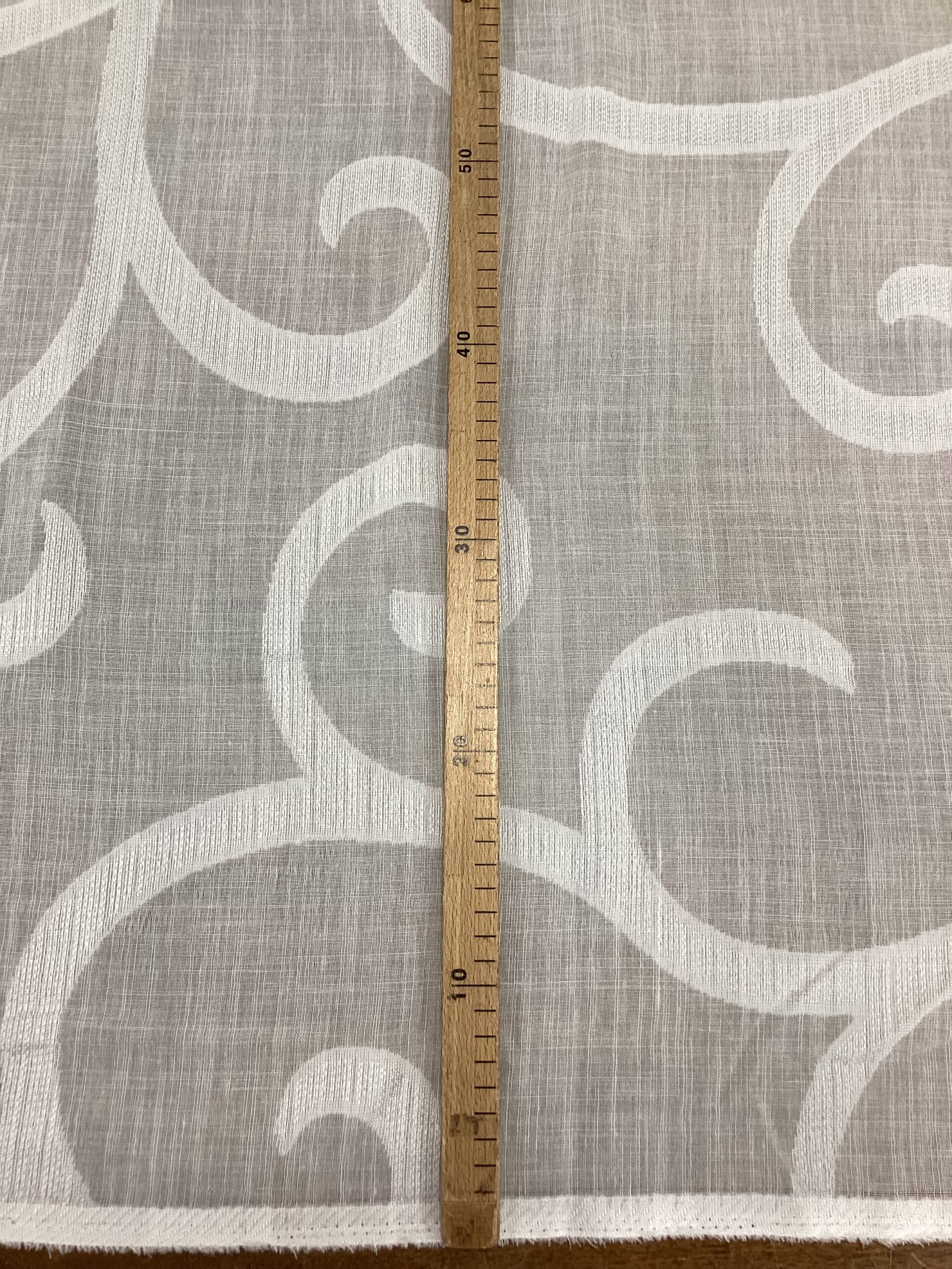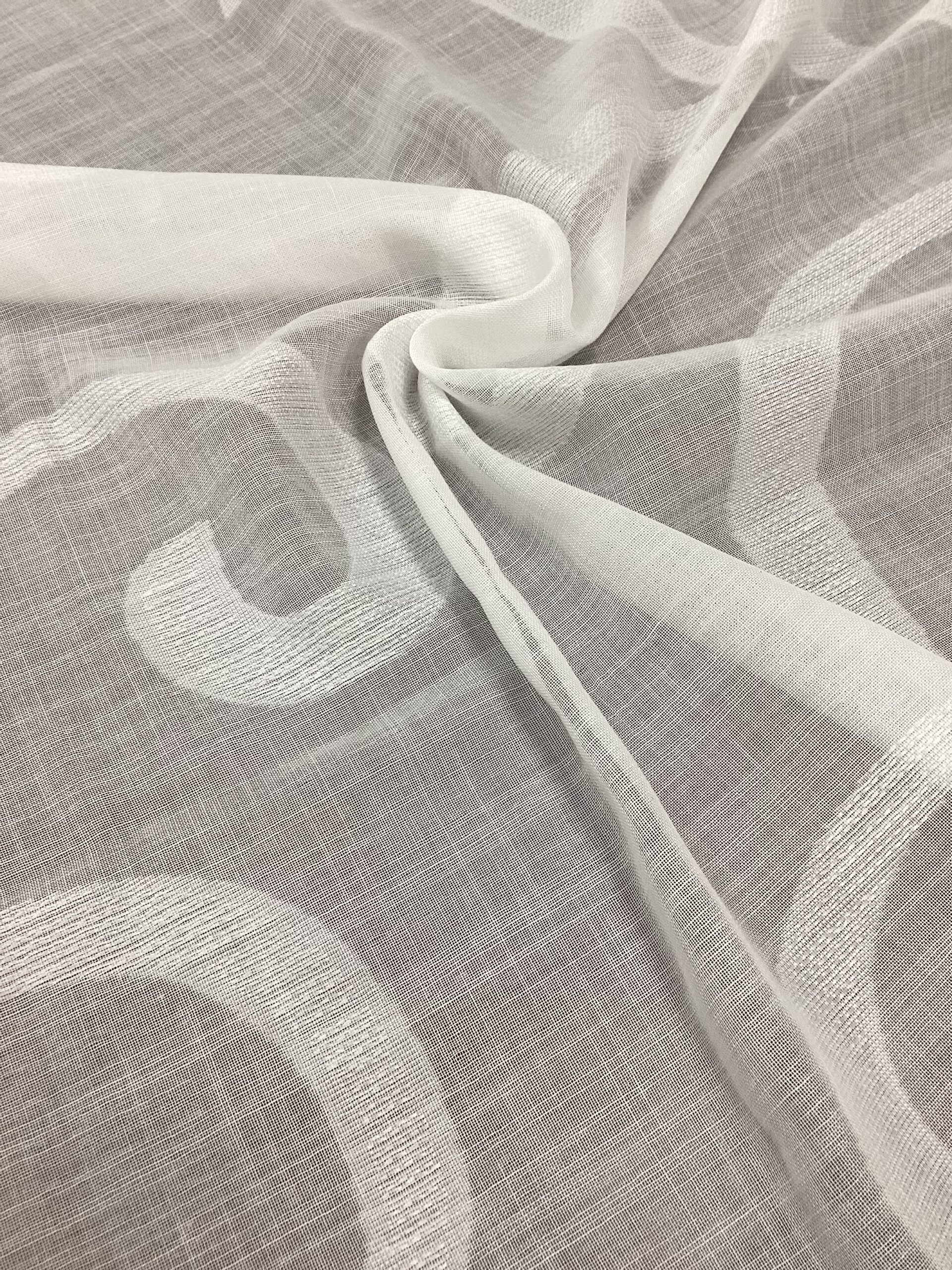 Lasciati ispirare dal fascino senza tempo dell’Oriente con questo raffinato tessuto per tendaggi in stile arabesco, disponibile in un elegante e luminoso bianco. Il motivo decorativo, ispirato all’arte islamica e ai disegni moreschi, si distingue per i suoi intrecci armoniosi e simmetrici, che richiamano geometrie delicate e sofisticate.