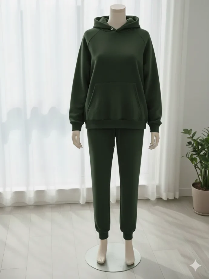 Tessuto Felpa in Cotone Felpato – Tinta Unita Verde Bottiglia