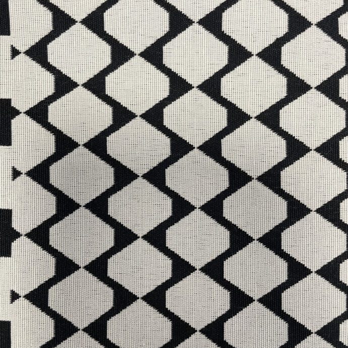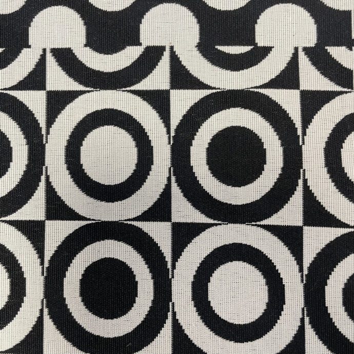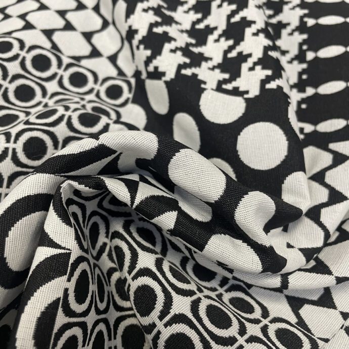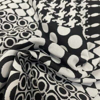 Tessuto 100% Cotone in fantasia optical, adatto a tovagliato, tappezzeria e federe per cuscini.