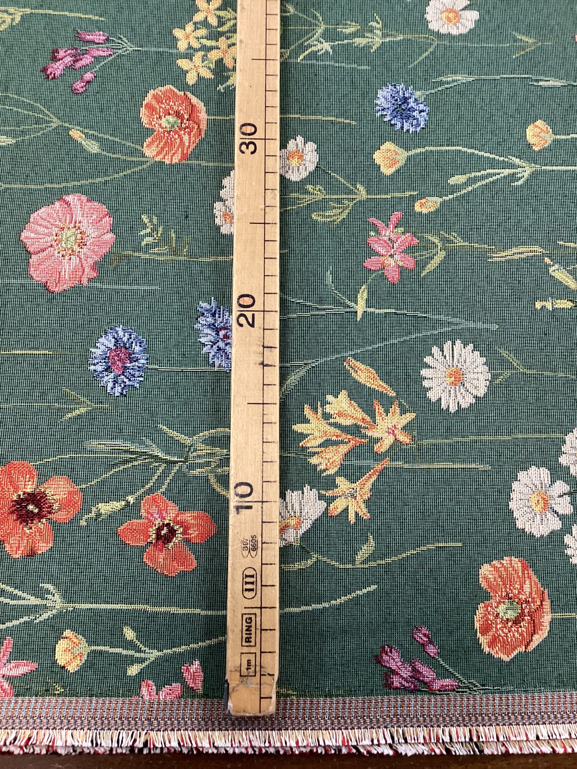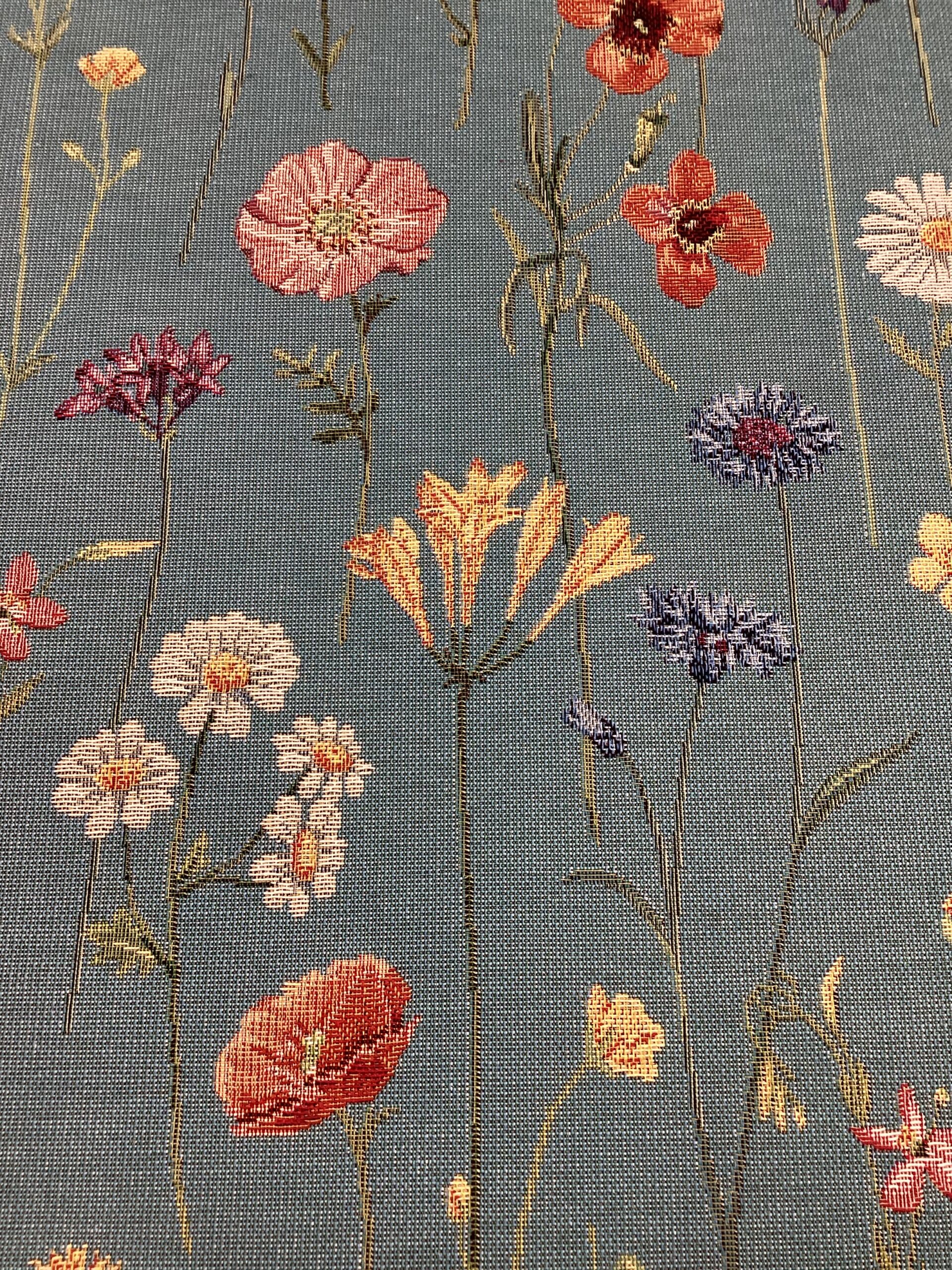Tessuto in gobelin di misto cotone con fiori di campo. Altezza tessuto 2.80m.