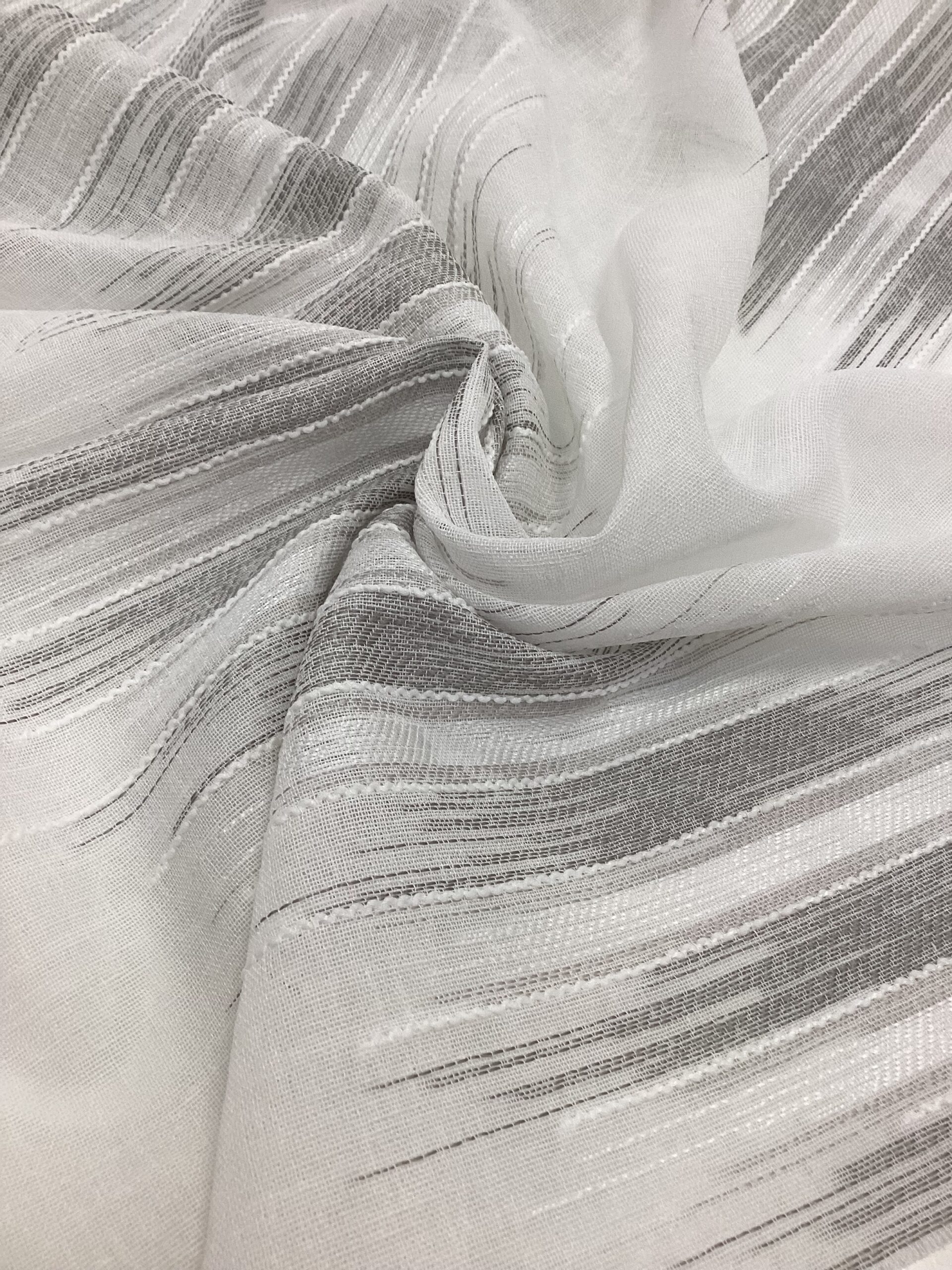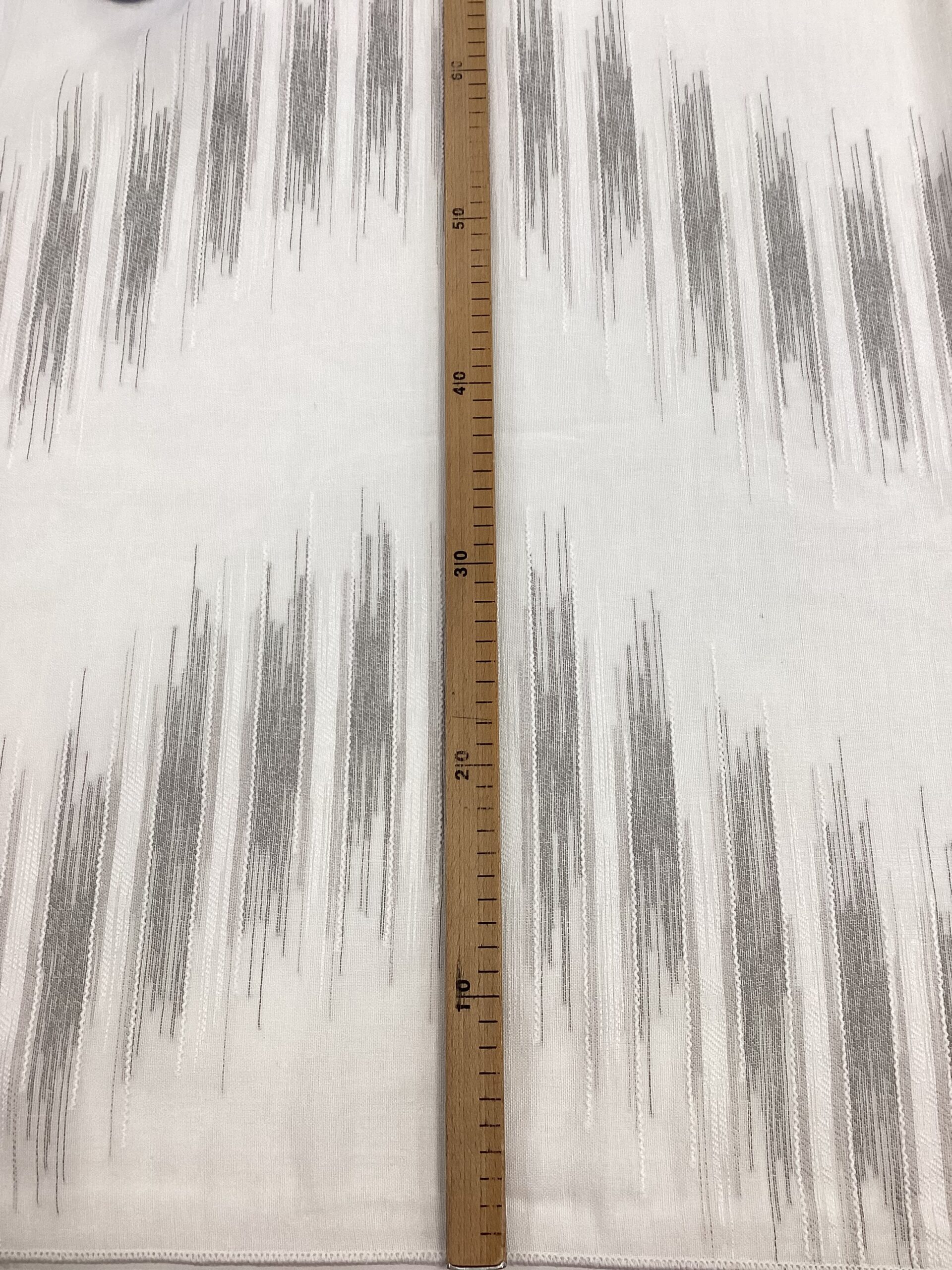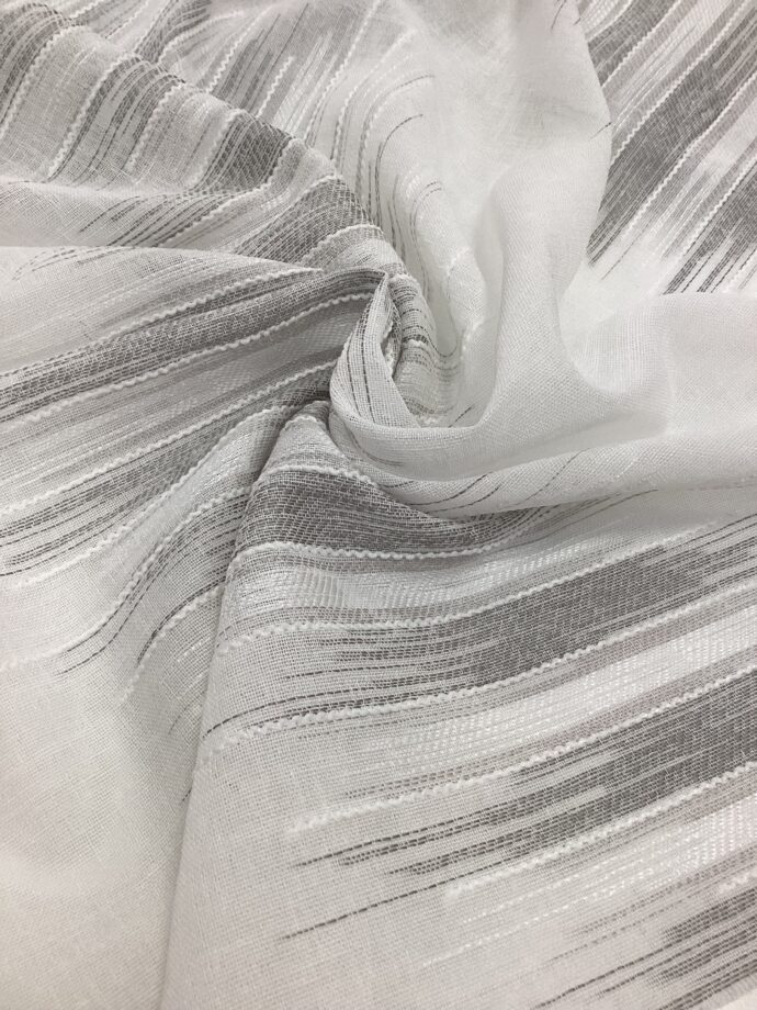 Un tessuto dallo stile contemporaneo e ricercato, ideale per tendaggi a faldoni o a onde morbide, capace di arredare con discreta eleganza ogni ambiente. Il disegno è scandito da ricami a forma rettangolare dai contorni irregolari, disposti lungo la lunghezza in una composizione fluida e dinamica.