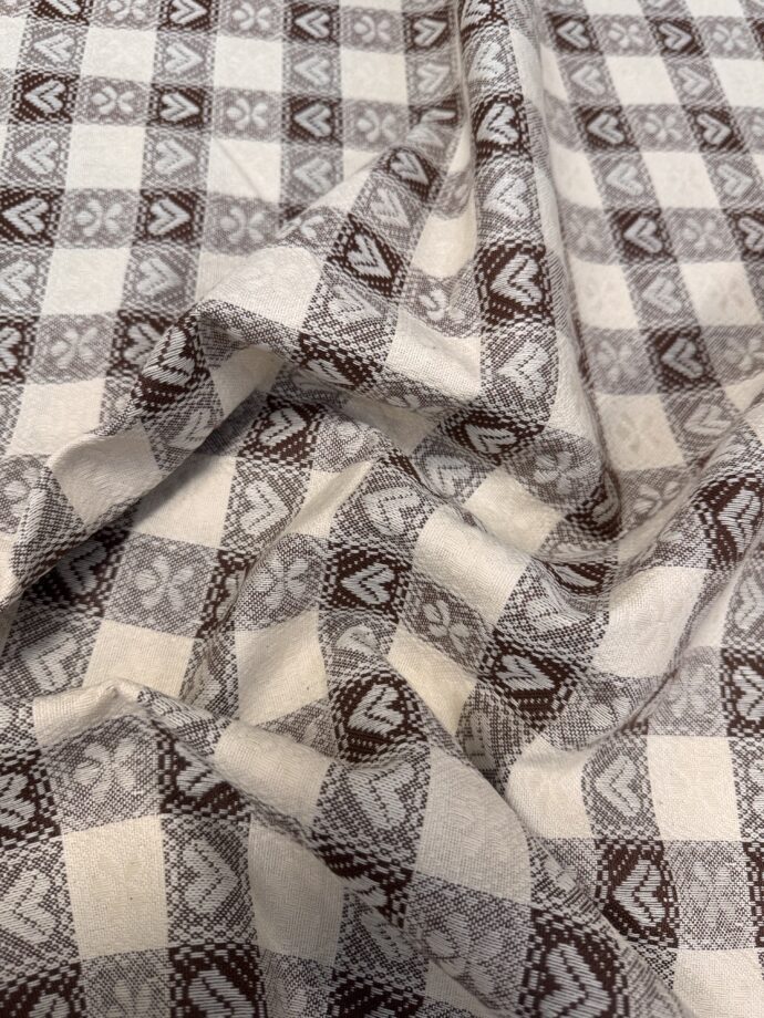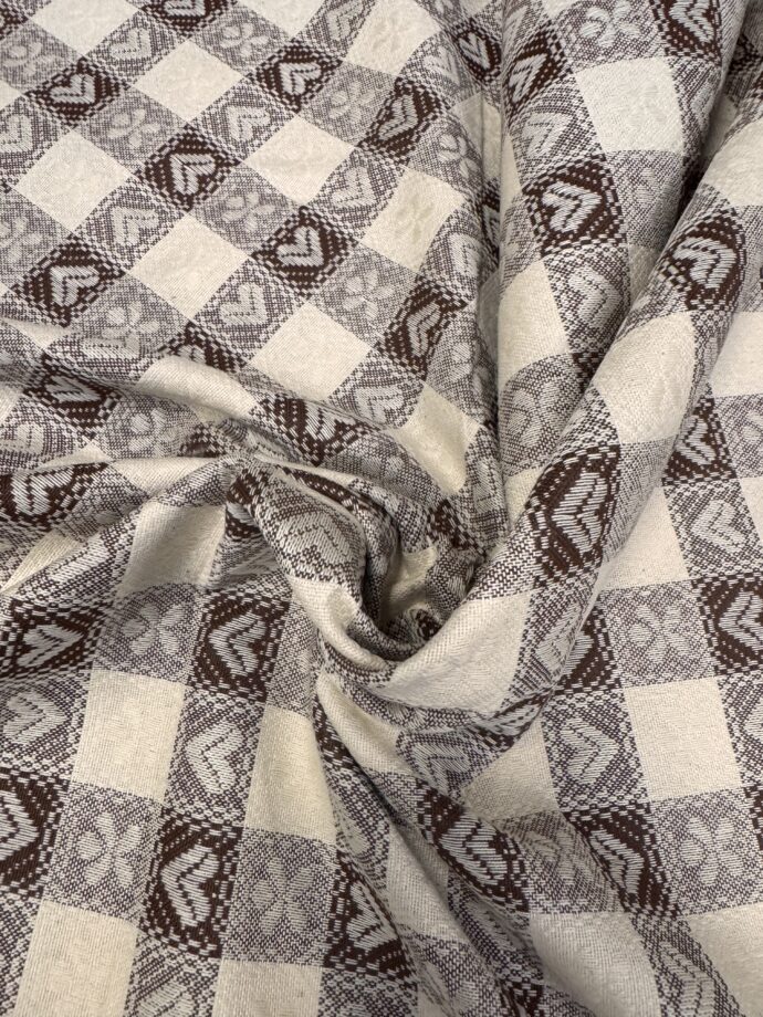 Scopri il nostro tessuto in cotone effetto jacquard, tinto in filo nelle raffinate sfumature del panna e del marrone caratterizzato dalla tipica fantasia tirolese. Perfetto per realizzare tovagliati, questo tessuto si integra armoniosamente in ambienti classici e rustici, aggiungendo un tocco di calore e tradizione. Scegli questo tessuto per creare atmosfere accoglienti e dal fascino senza tempo.