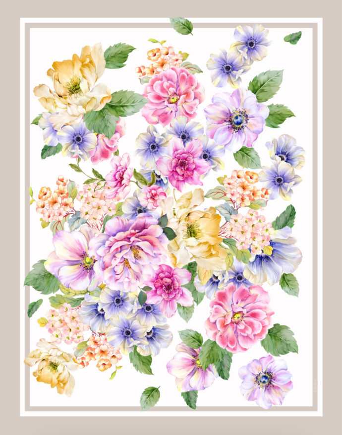 Tovaglia in cotone con stampa digitale fiori 140×220 cm.