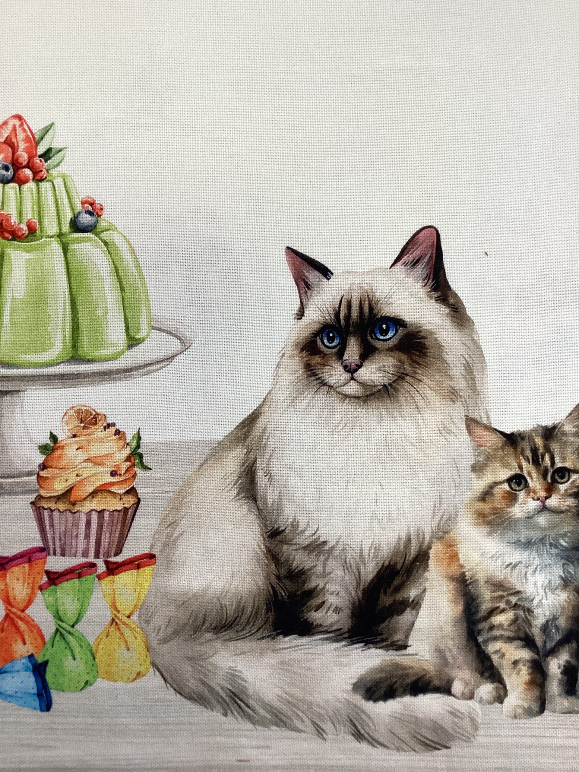 Tovaglia in 100% cotone con stampa digitale di gatti golosi