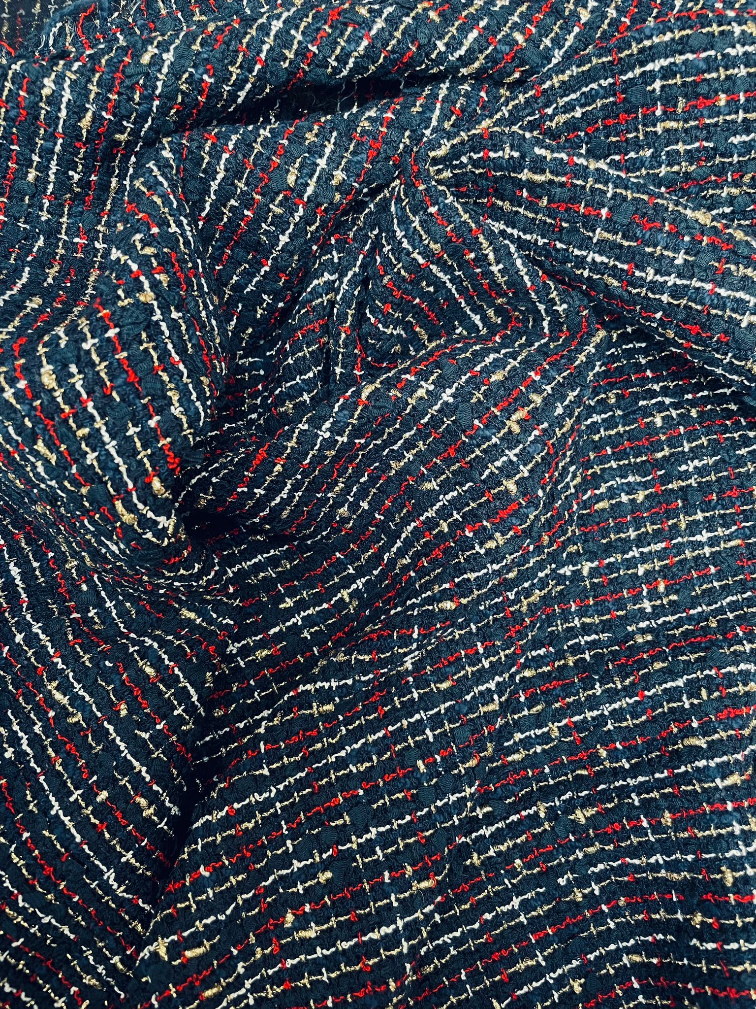 Tweed in cotone, viscosa, poliestere e lamè