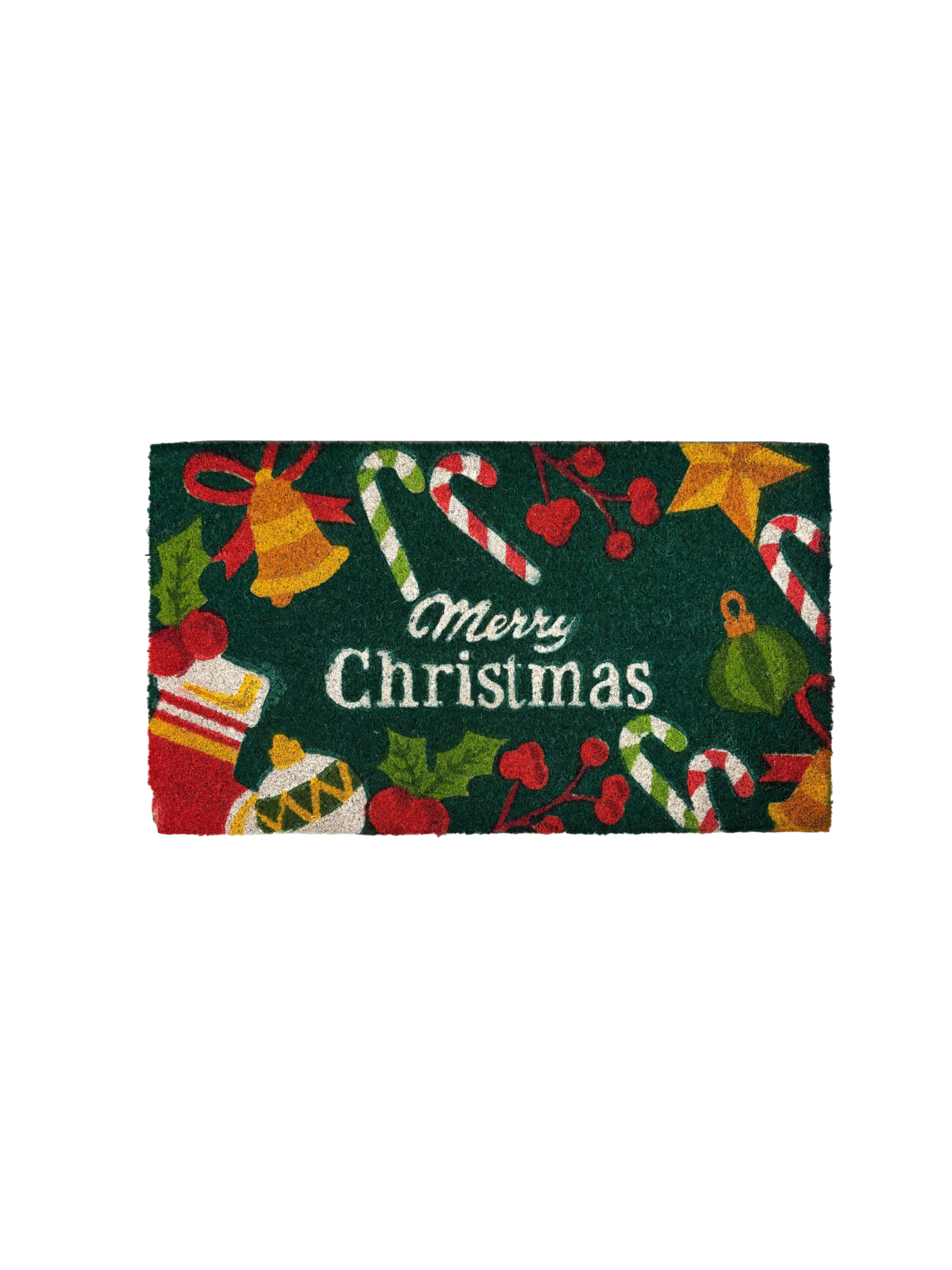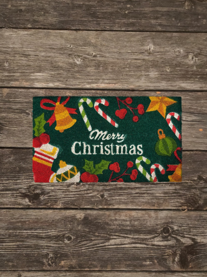 Zerbino natalizio 40×70 cm in cocco, spesso 2 cm, per un ingresso accogliente e festoso fin dalla porta di casa.